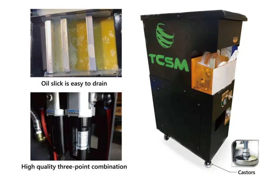 It efficiently processes oil and metal chips—comprising mixed materials such as aluminum and iron—generated by machine tools like CNC milling machines. The high-quality three-stage separation structure effectively separates and recovers oil, sludge, and metal debris. It also facilitates smooth oil film removal, ensuring consistent discharge performance and safeguarding equipment longevity.